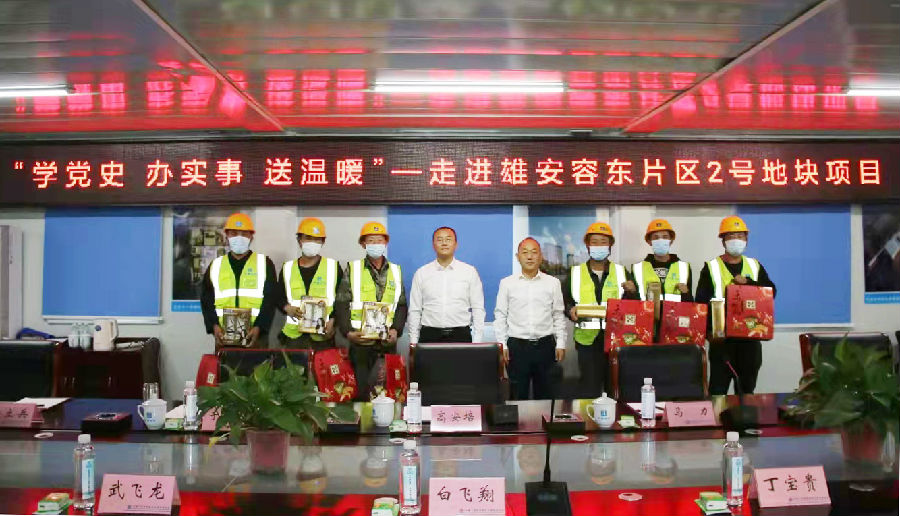 初心如磐,使命在肩,領悟全會精神,筑牢信仰之基。12月8日,公司副總經理高安培、副總經理馬力一行到雄安容東2#地項目開展十九屆六中全會精神主題宣講暨“學黨史、辦實事、送溫暖”活動。
